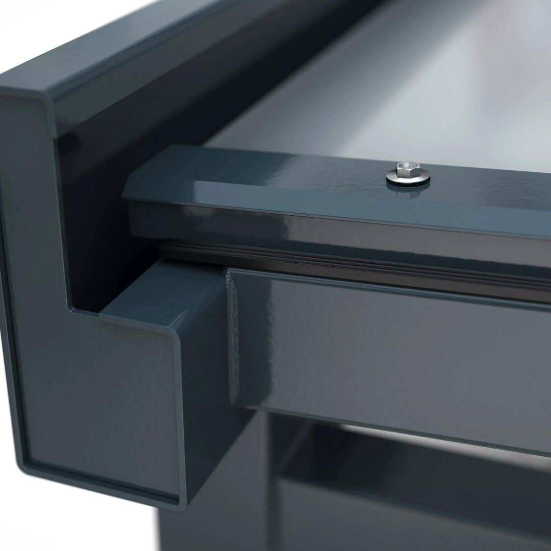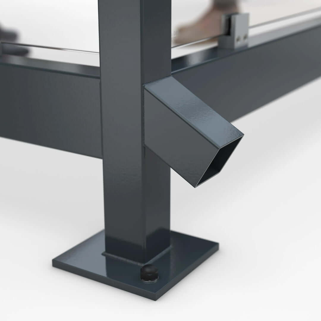 De basis van de Dresden D4 bestaat uit een frame van thermisch verzinkt staal, dat standaard wordt geleverd in een RAL-kleur naar keuze. Hierdoor past de automaat overkapping altijd bij de omgeving of huisstijl. De staalconstructie is uiterst weerbestendig en vraagt weinig onderhoud.