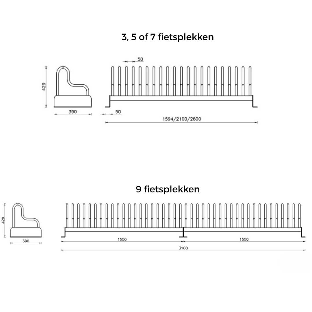 Variant: 3 fietsplekken, 5 fietsplekken, 7 fietsplekken, 9 fietsplekken