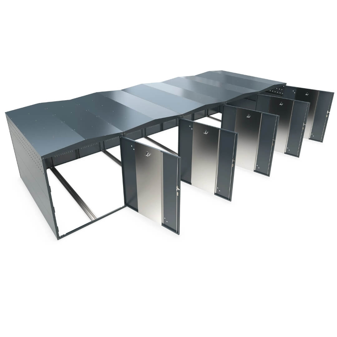 Fietsopbergbox voor 1 fiets of voor 4 fietsen? De modulaire fietskluis is uitbreidbaar naar jouw wens