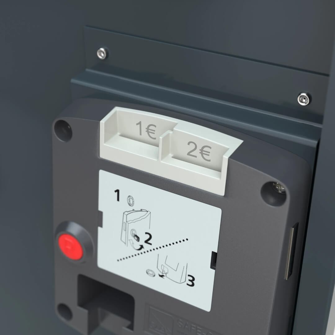 - Muntjesslot: naast het standaard cilinderslot kun je kiezen voor een muntjesslot, ideaal voor openbare of commerciële omgevingen waar fietsen tijdelijk gestald worden.
